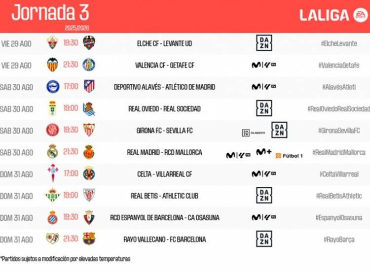 直播吧7月14日讯 西甲官方公布新赛季第3轮赛程,皇马和巴萨均在凌晨3:30出战。